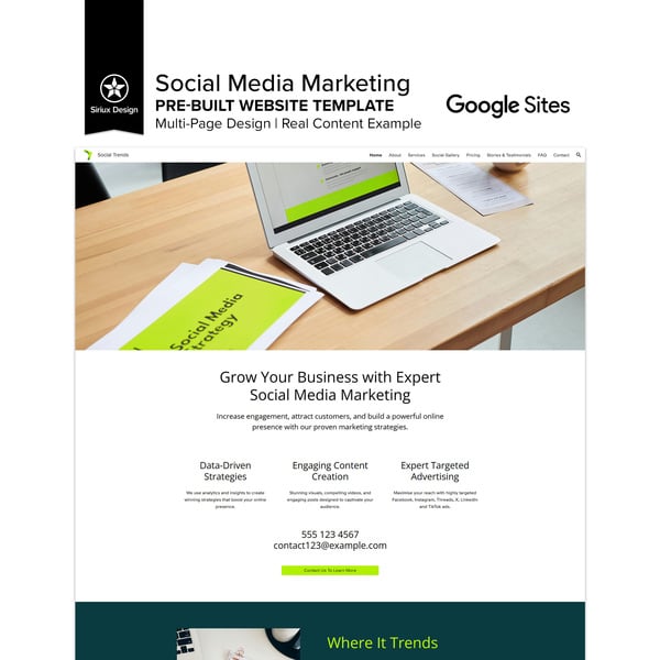 Social Media Marketing Google Sites Multi-Page Pre-Built Website Template (Social Trends)
