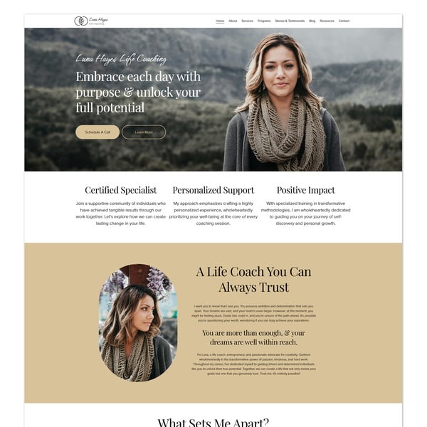 Squarespace Life Coach Pre-Built Website Template (Luna Hayes Life Coaching)