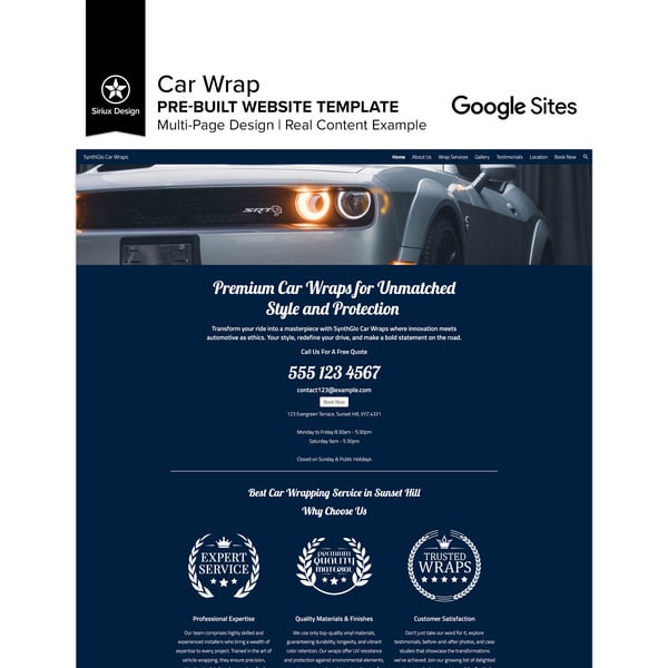 Car Wrap Google Sites Multi-Page Pre-Built Website Template (SynthGlo Car Wraps)