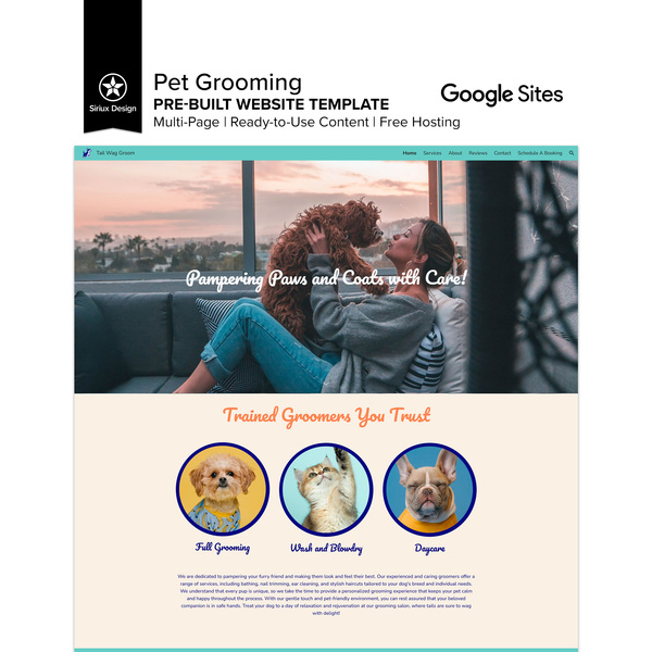 Pet Grooming Google Sites Pre-Built Multi-Page Website Template (Tail Wag Groom)