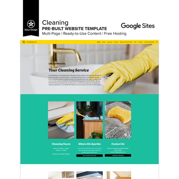 Cleaning Service Google Sites Pre-Built Multi-Page Website Template (Lily Spotless Co.)