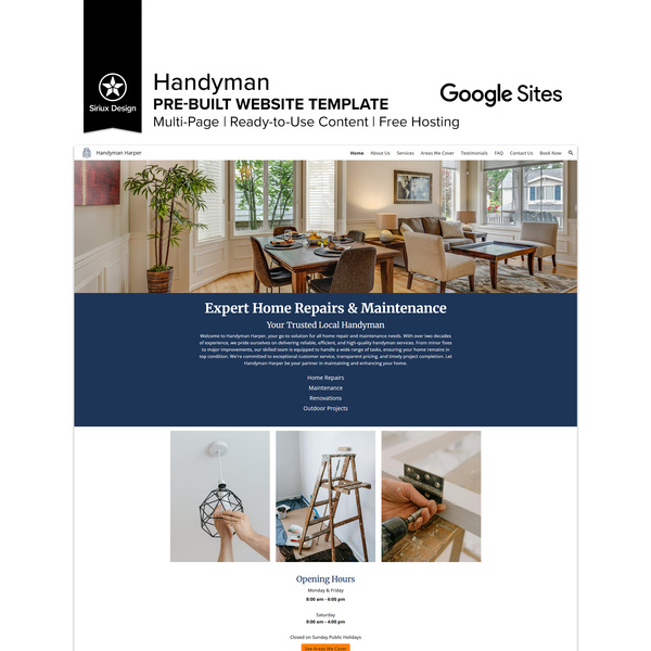 Handyman Google Sites Pre-Built Multi-Page Website Template (Handyman Harper)