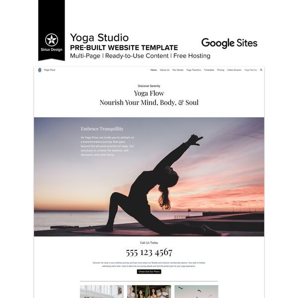 Yoga Studio Google Sites Pre-Built Multi-Page Website Template (Yoga Flow)