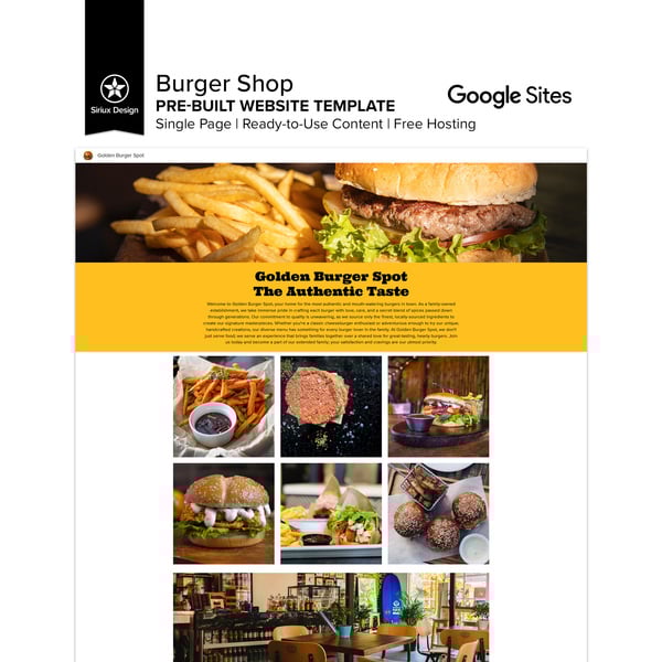 Burger Shop Google Sites Pre-Built Single Page Website Template (Golden Burger Spot)
