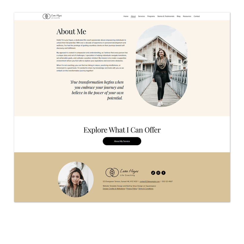 Squarespace Life Coach Pre-Built Website Template (Luna Hayes Life Coaching)