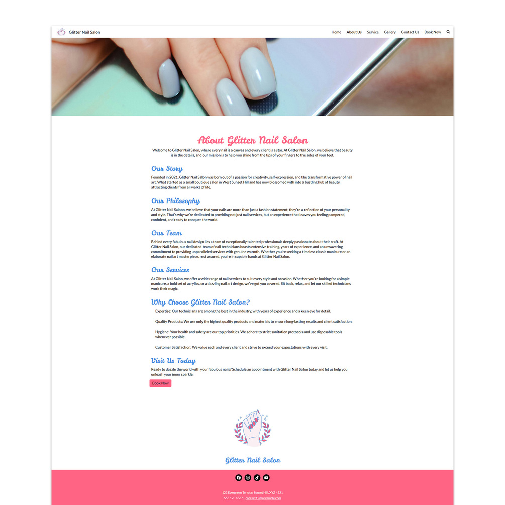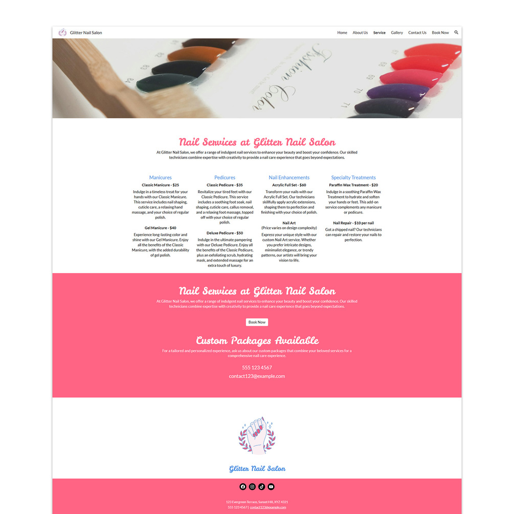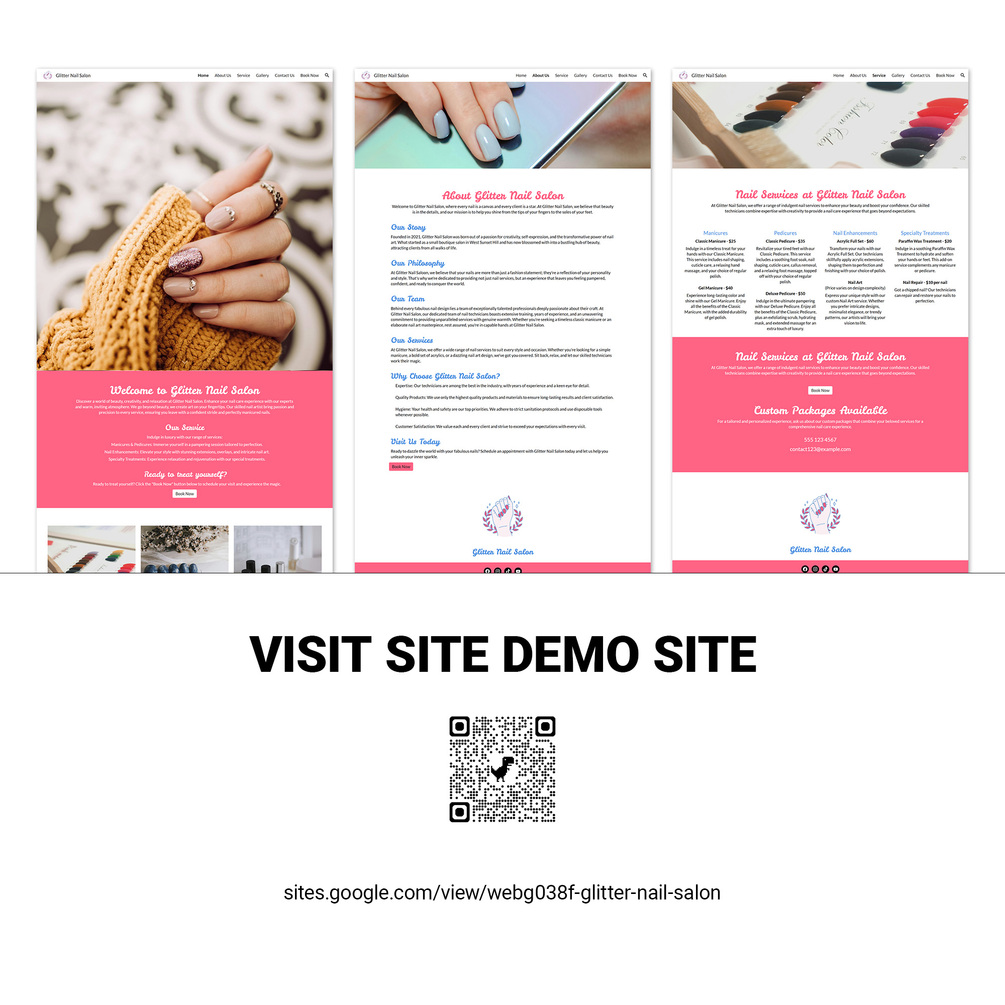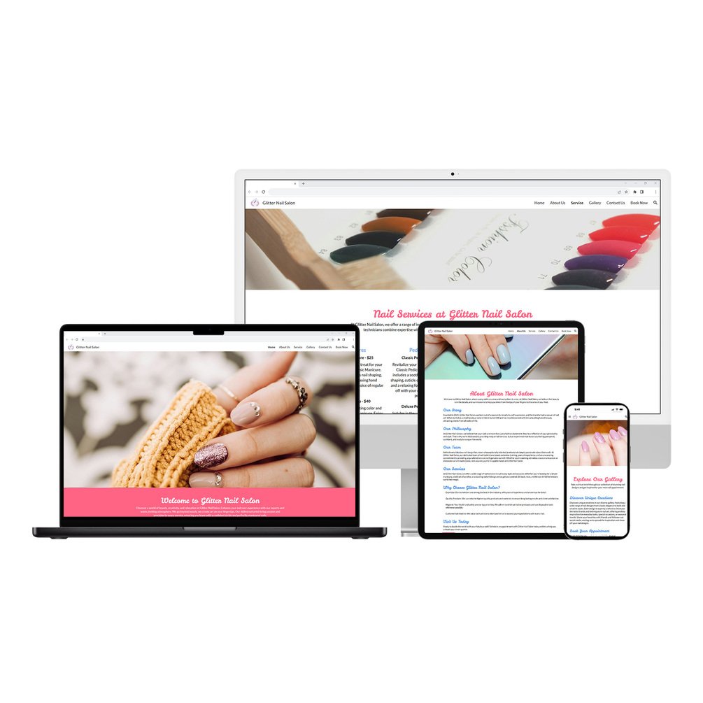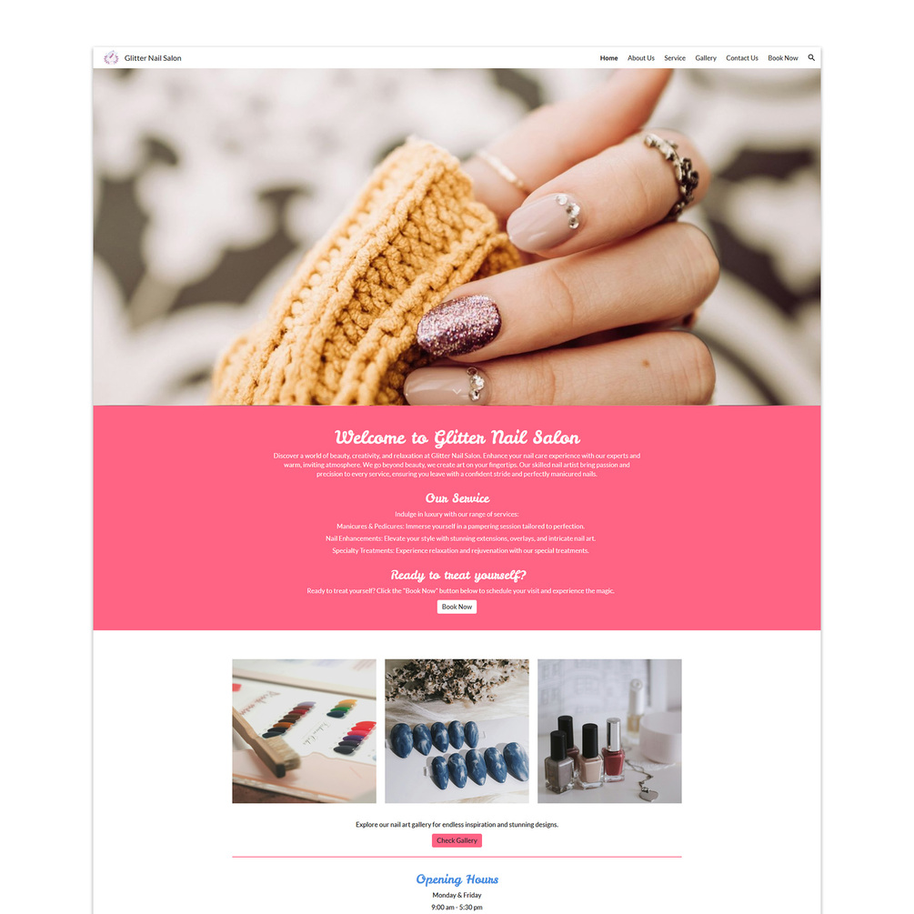 Nail Salon Google Sites Pre-Built Multi-Page Website Template (Glitter Nail Salon)