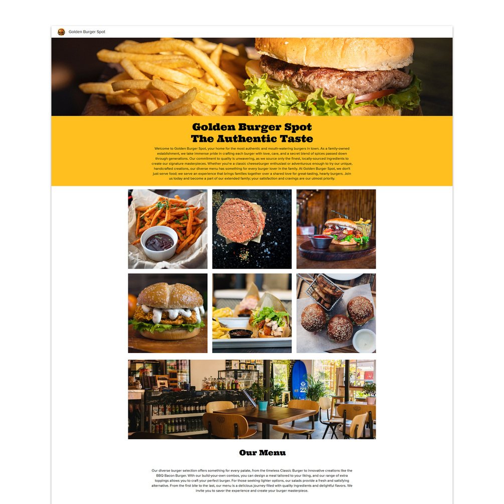 Google Site Golden Burger Spot website template, professionally designed with a modern, user-friendly layout. Fully customizable to reflect your brand, the theme features clean visuals and organized sections to showcase your business and deliver clear, informative content to your customers.