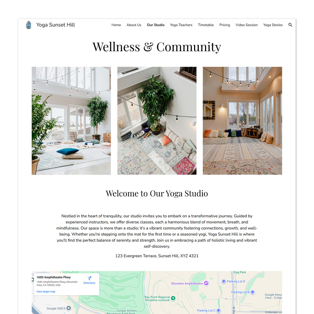 Yoga Studio Google Sites Pre-Built Multi-Page Website Template (Yoga Flow)