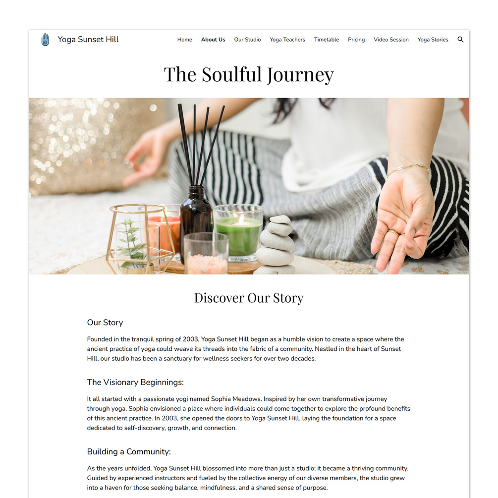 The Yoga Flow Google Sites template is your complete, pre-built website solution designed specifically for yoga studios, wellness instructors, and fitness professionals who need to launch a professional online presence instantly. The design offers a clean, serene, and inviting aesthetic, featuring calm color palettes and generous white space to create a soothing, professional backdrop for your business. This template delivers exceptional value by including real text and image examples that guide you, making it clear what copy to have and what images to use, which you can simply replace. Built in Google Sites interface, it requires zero coding, gives you control over customization, and provides the necessary pages to operate, making the Yoga Flow template the fastest way to get your wellness brand published with confidence.