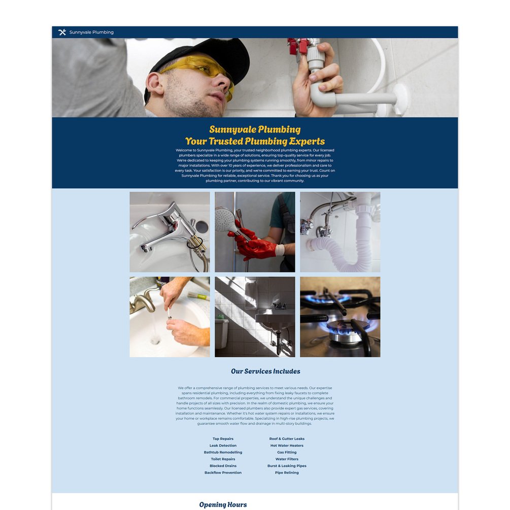 Plumber Google Sites Pre-Built Single Page Website Template (Sunnyvale Plumbing)