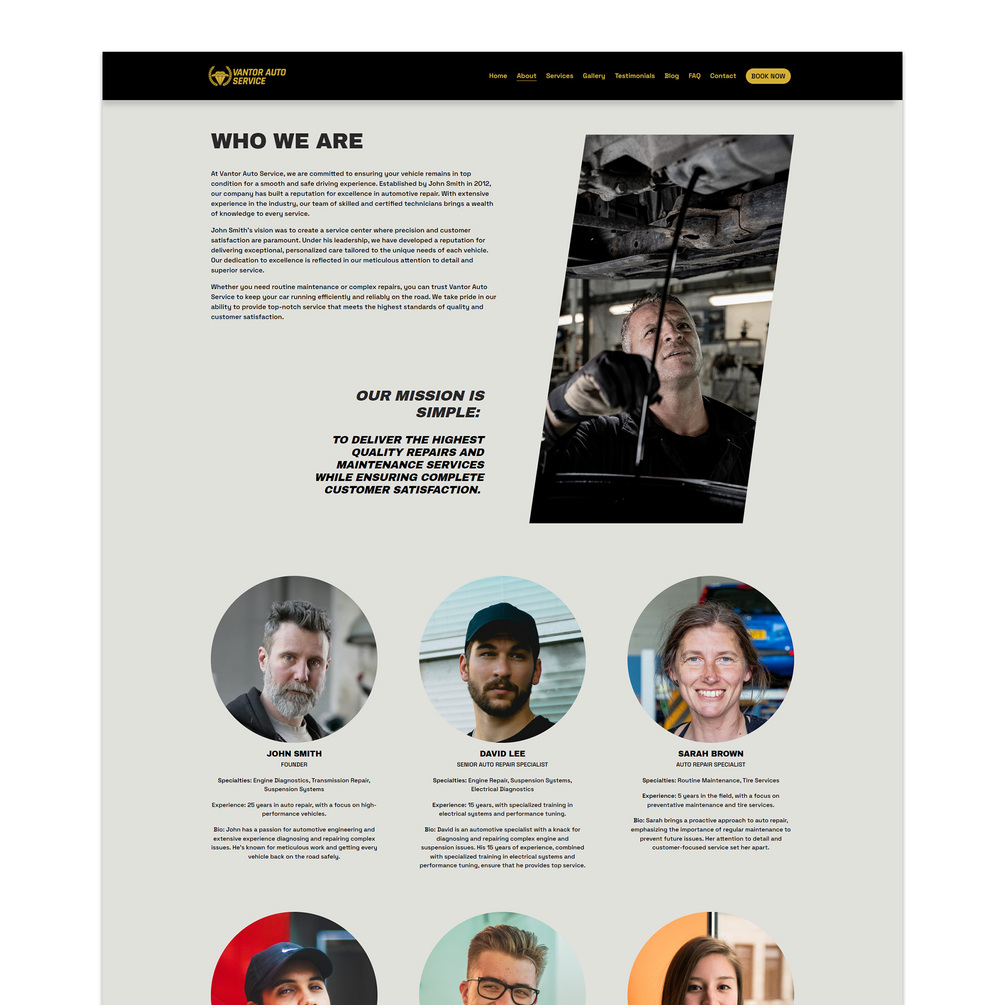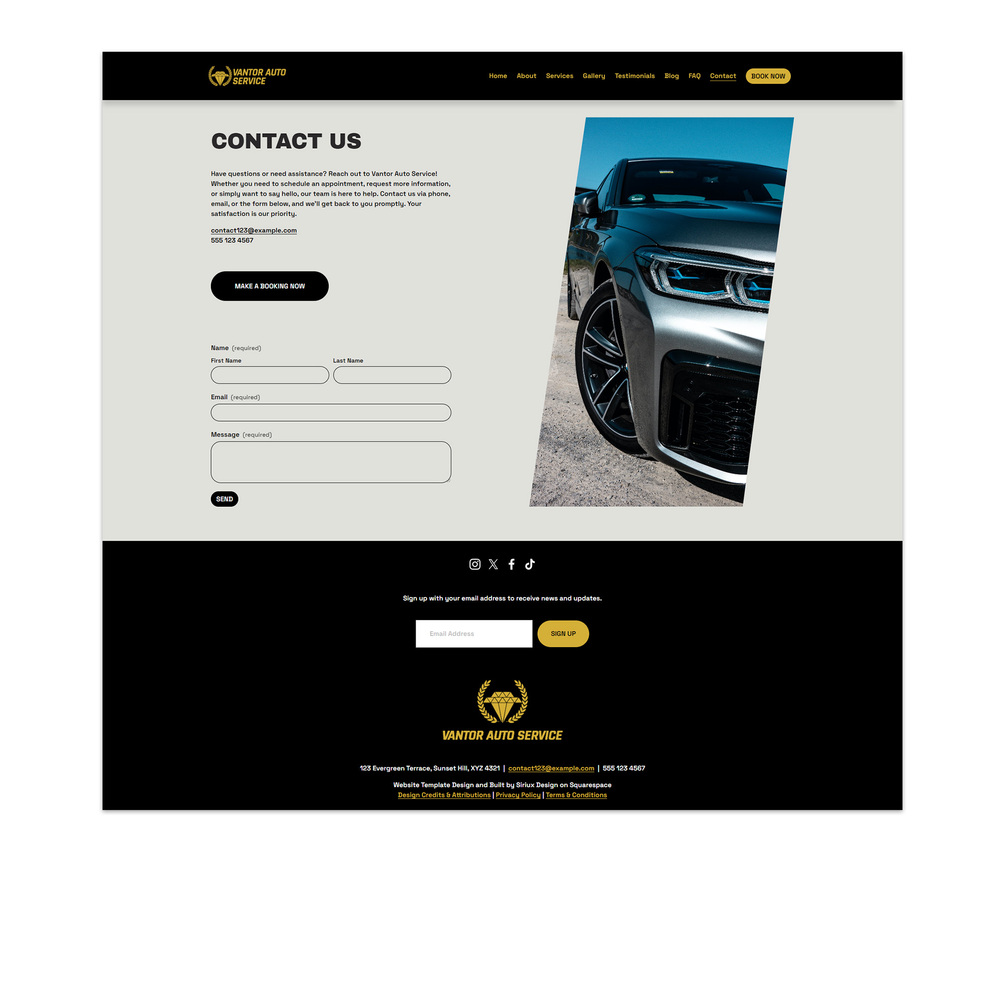 Squarespace Auto Mechanic Car Repair Pre-Built Website Template (Vantor Auto Service)