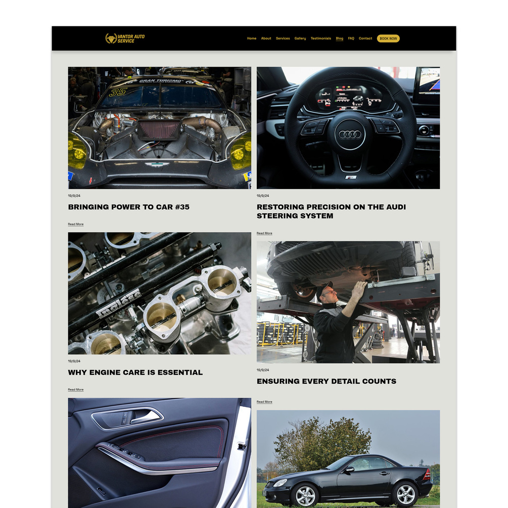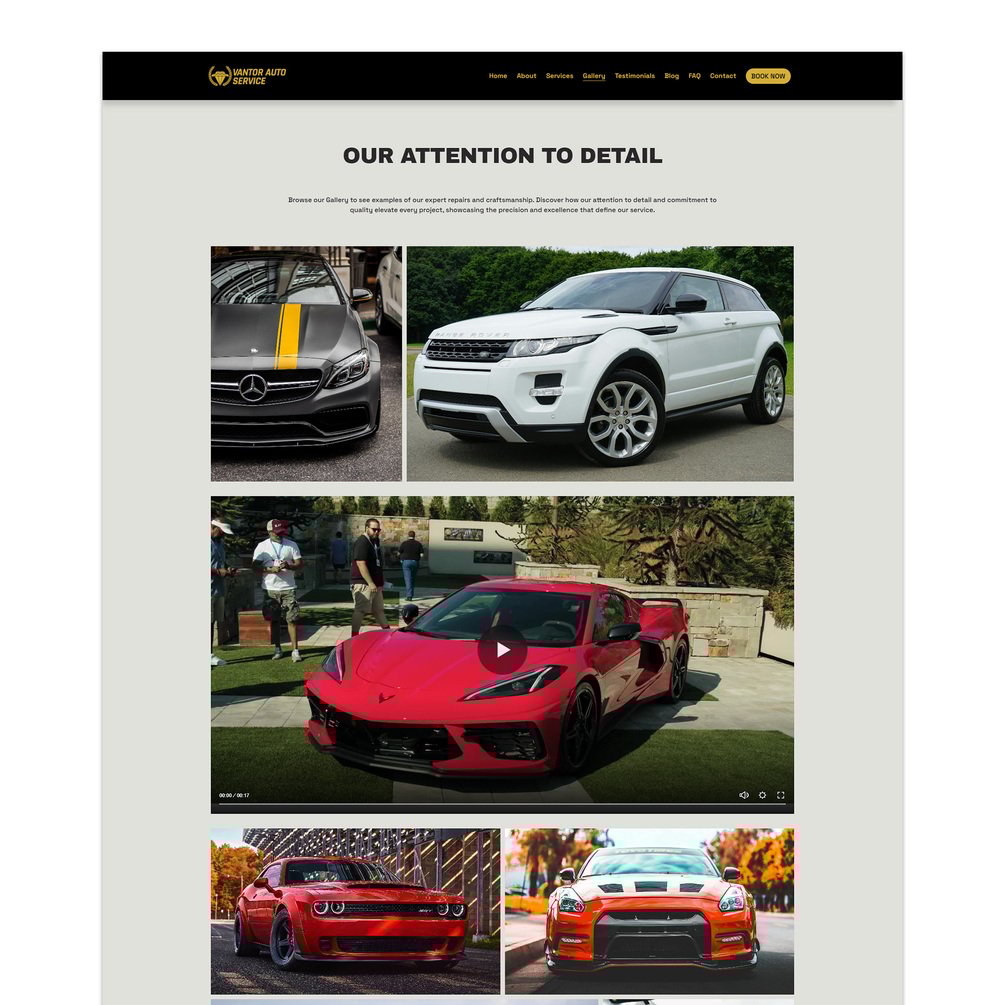 - Gallery: Showcase high-quality photos of your work and the cars you service.