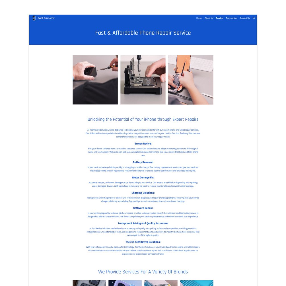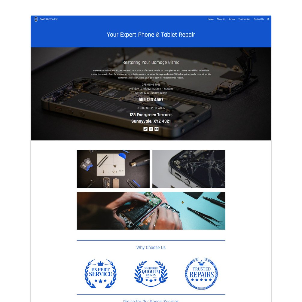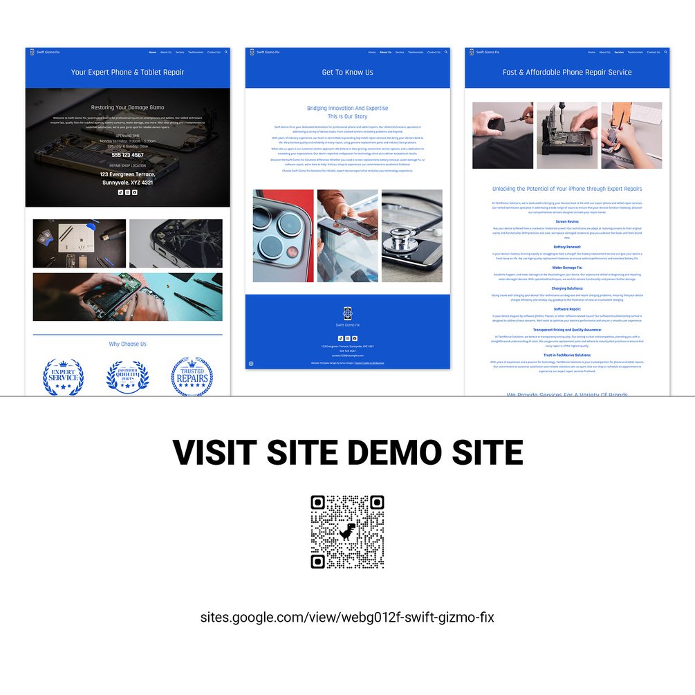 Phone Repair Google Sites Pre-Built Multi-Page Website Template (Swift Gizmo Fix)