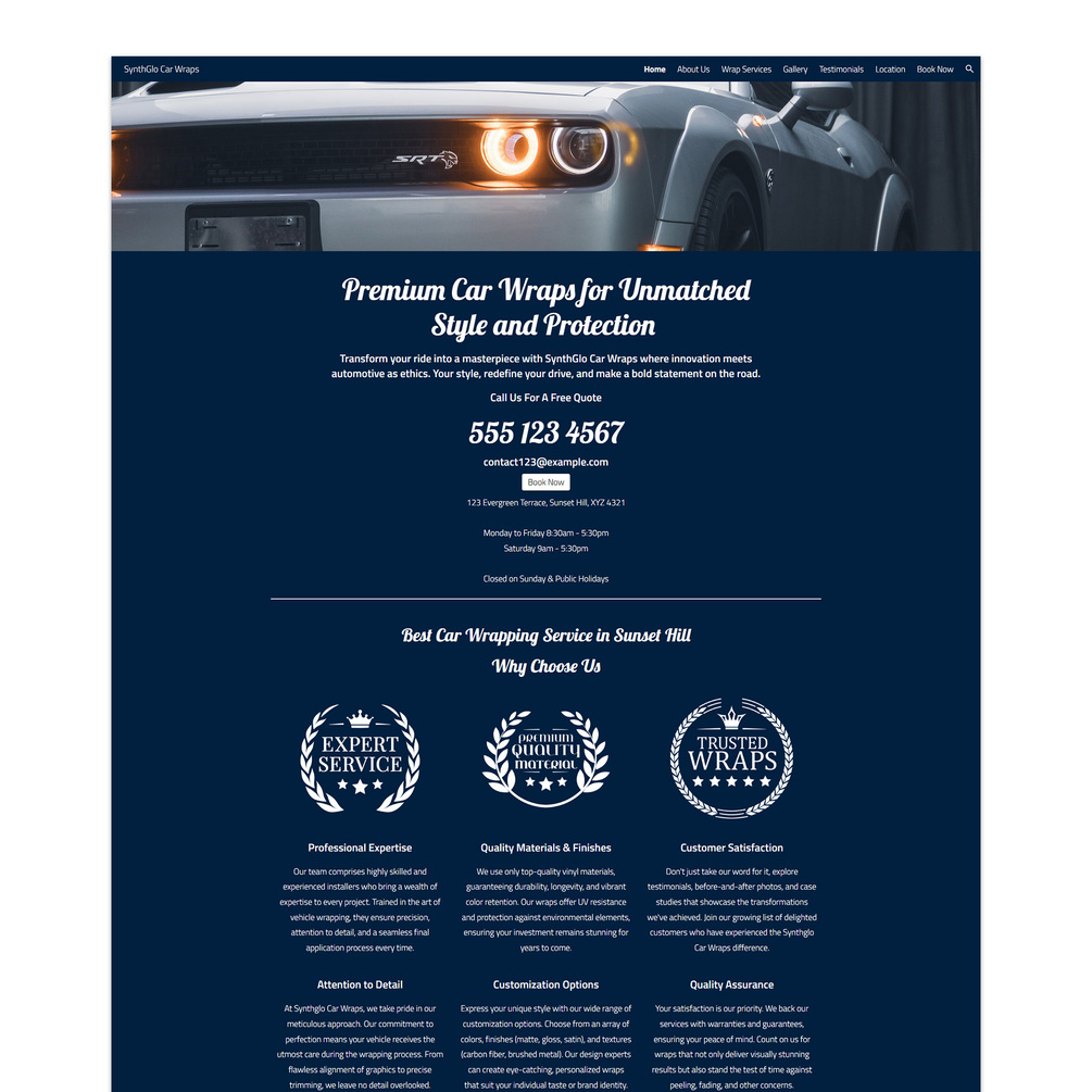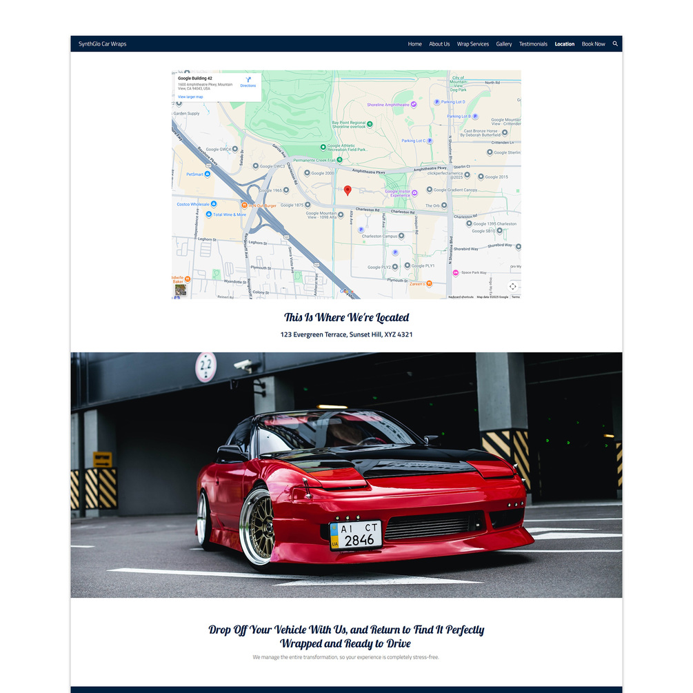 Car Wrap Google Sites Multi-Page Pre-Built Website Template (SynthGlo Car Wraps)