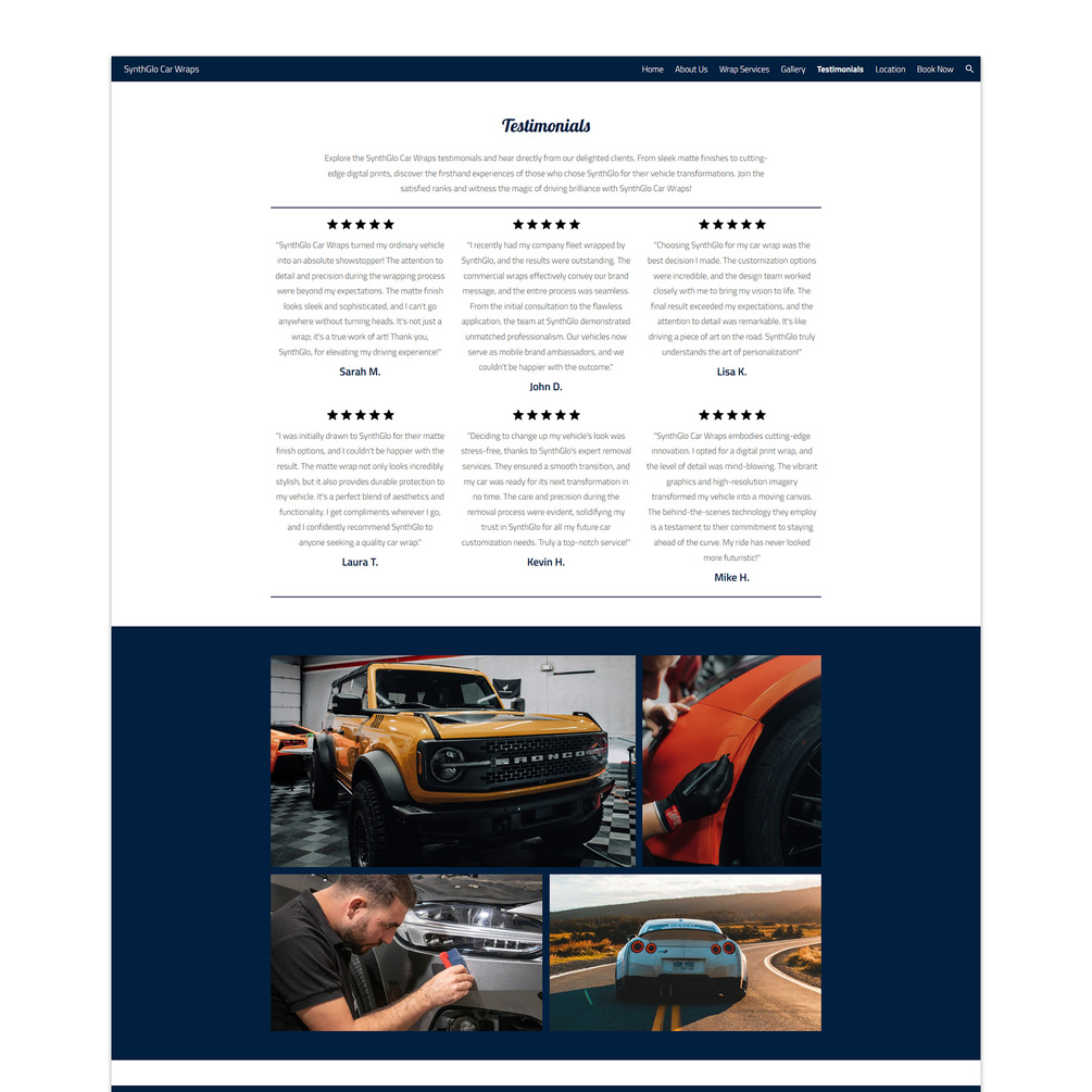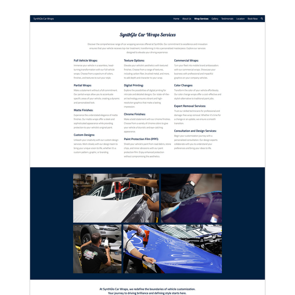 SynthGlo Car Wraps Google Sites Template